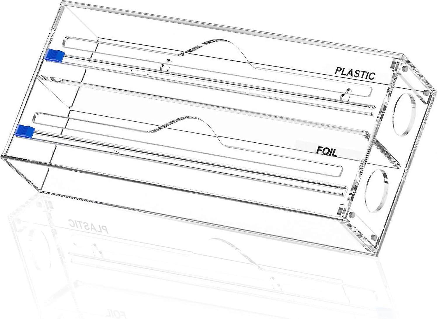 Wrap Dispenser, Acrylic Foil Dispenser with Slide Cutter and Labels, Plastic Wrap, Aluminum Foil Wax Paper Dispen