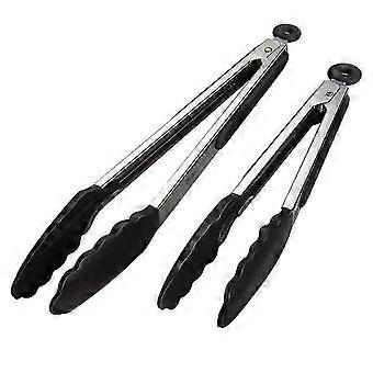 9" Silikon Kjøkkentang med Stålhåndtak - 2 stk Svart for BBQ og matlaging