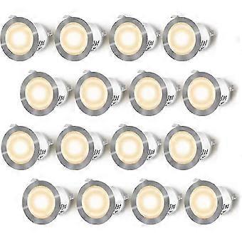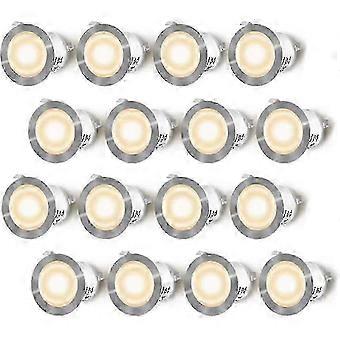 Sett med 16 led innfelt spotlights for treterrasse, vanntett Ip67, utendørs innfelt spotlights, 0.6w dc12v, varmt hvitt lys, mini lampesett for sti