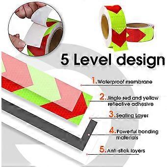 25mx5cm reflekterende advarselstape, reflektor sikkerhetstape for pilorientering, advarselsskilt, høy synlighet, høy intensitet, pil i rødt og hvitt -
