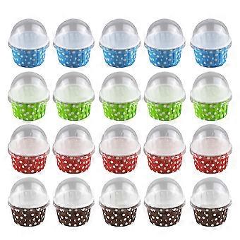 100 stk kreative kakekopper mellomstor papir iskremkopp varmebestandig dessertbeholder med lokk til yoghurtmousse (tilfeldig farge)