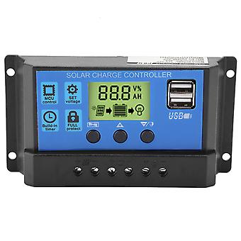 12V 24V Solcellepanel Kontroller LCD-skjerm Fotovoltaisk Ladekontroller Med Kontakter Blå
