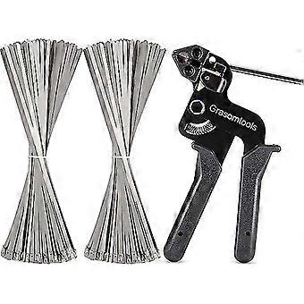 200 stk kabelbånd i rustfritt stål og metallkabelbåndpistol