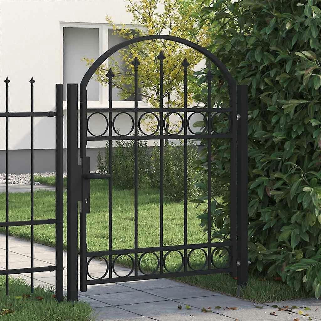Zauntor mit gewölbter Oberseite Stahl 104 x 125 cm Schwarz