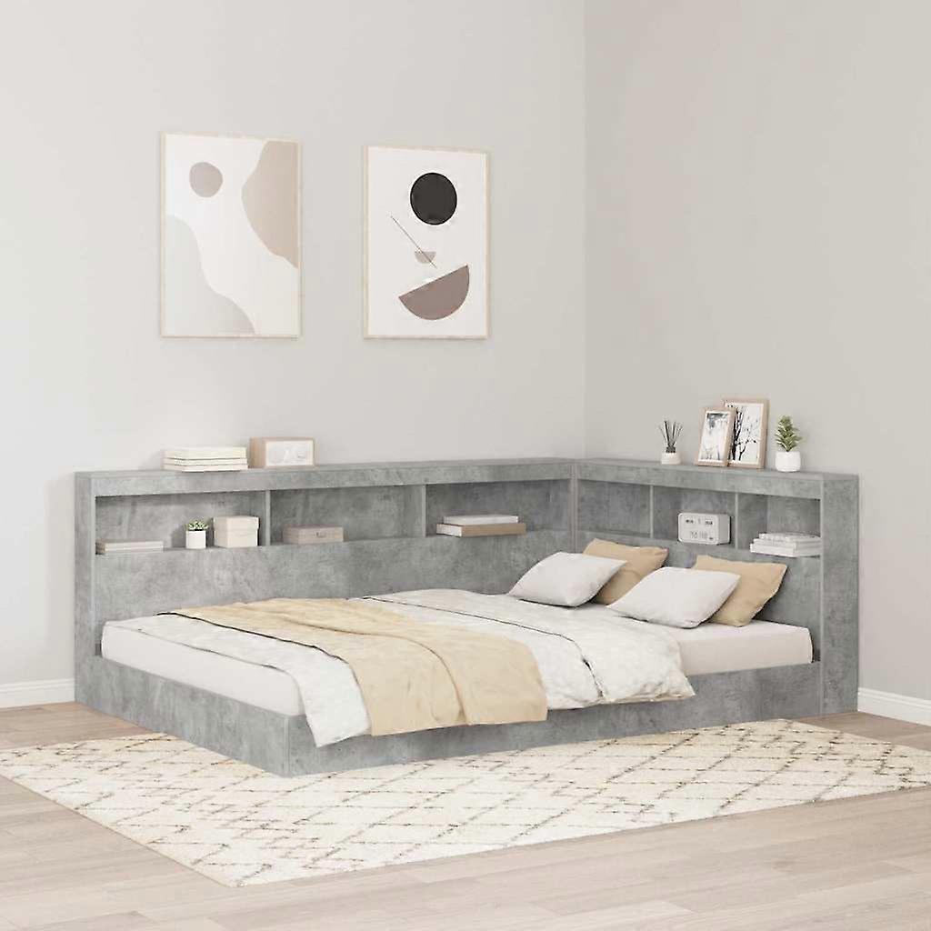 Aufbewahrungskopfteil mit Regal Beton Grau 150 cm Holzwerkstoff