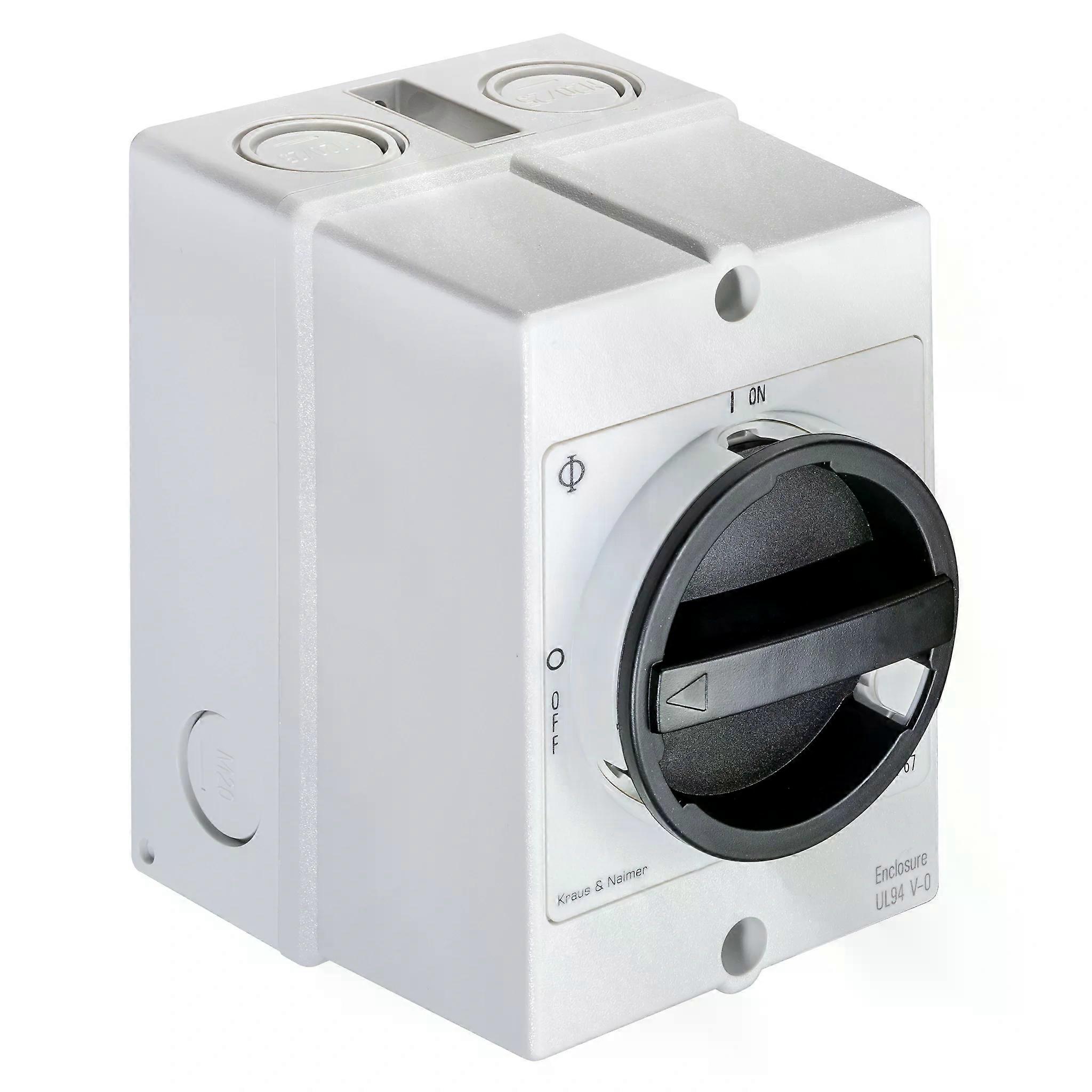 Kraus & Naimer Hauptschalter, 3pol + 1NO/1NC, AP-Geh. IP66, Ith=20 A, P=5,5 kW (AC23B, 400V AC), 2,5 mm², 1 Stk.