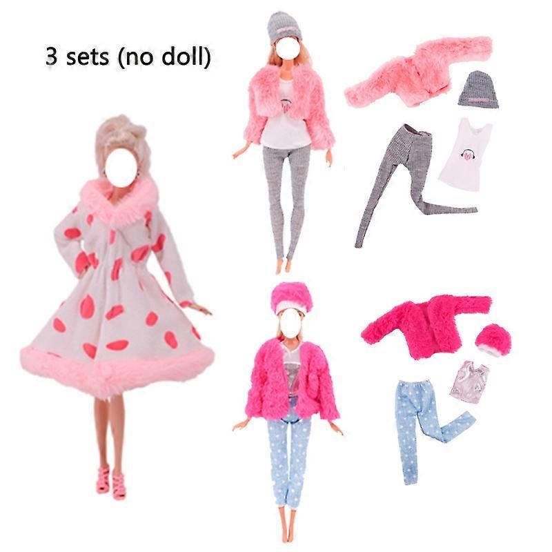 3 set/parti handgjorda modekläder för 11,5 tum/30 cm dockor vinterjacka tröja jacka klänning kläder