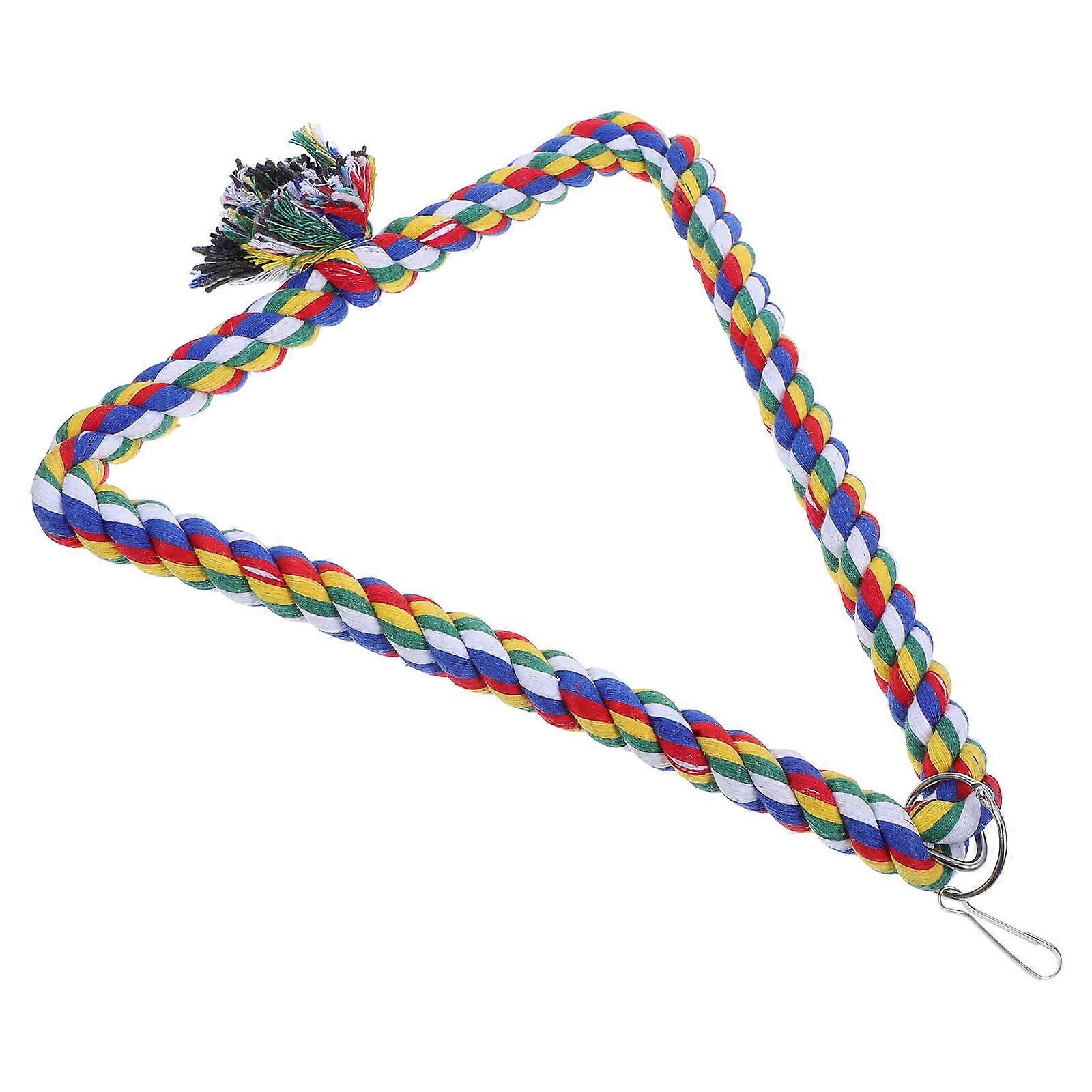 This item is made of for durable and use. It is a triangle swing with bright bird like colors that are visually appealing to the pets and their owners. As a bridge, ladder and swing, it is the perfect playground for your little parrot climbing, adventuring and desiring to explore. Feature - - Made of eco-friendly material, and for birds. - Encouraging pet exercises by developing balance and coordination. - With a funny triangle shape design that will keep the pet and their owners entertained while developing their skills. - toys for cockatiels, parakeets, parrots, course and other small birds. Package list: 1 * Colorful Cotton Rope Triangle Swing Bird Toy Climbing Ladder for Parrot Pet Training