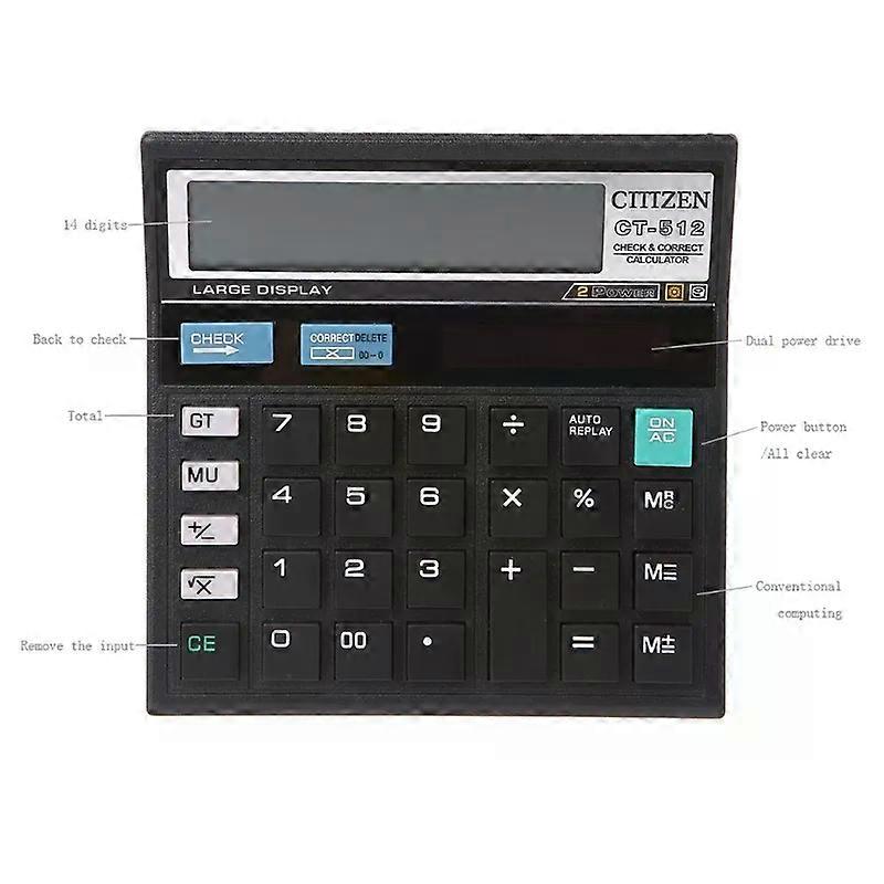 1 PC 12-Digit Solar Battery Dual Power Large Display Office Desktop Calculator CT-512