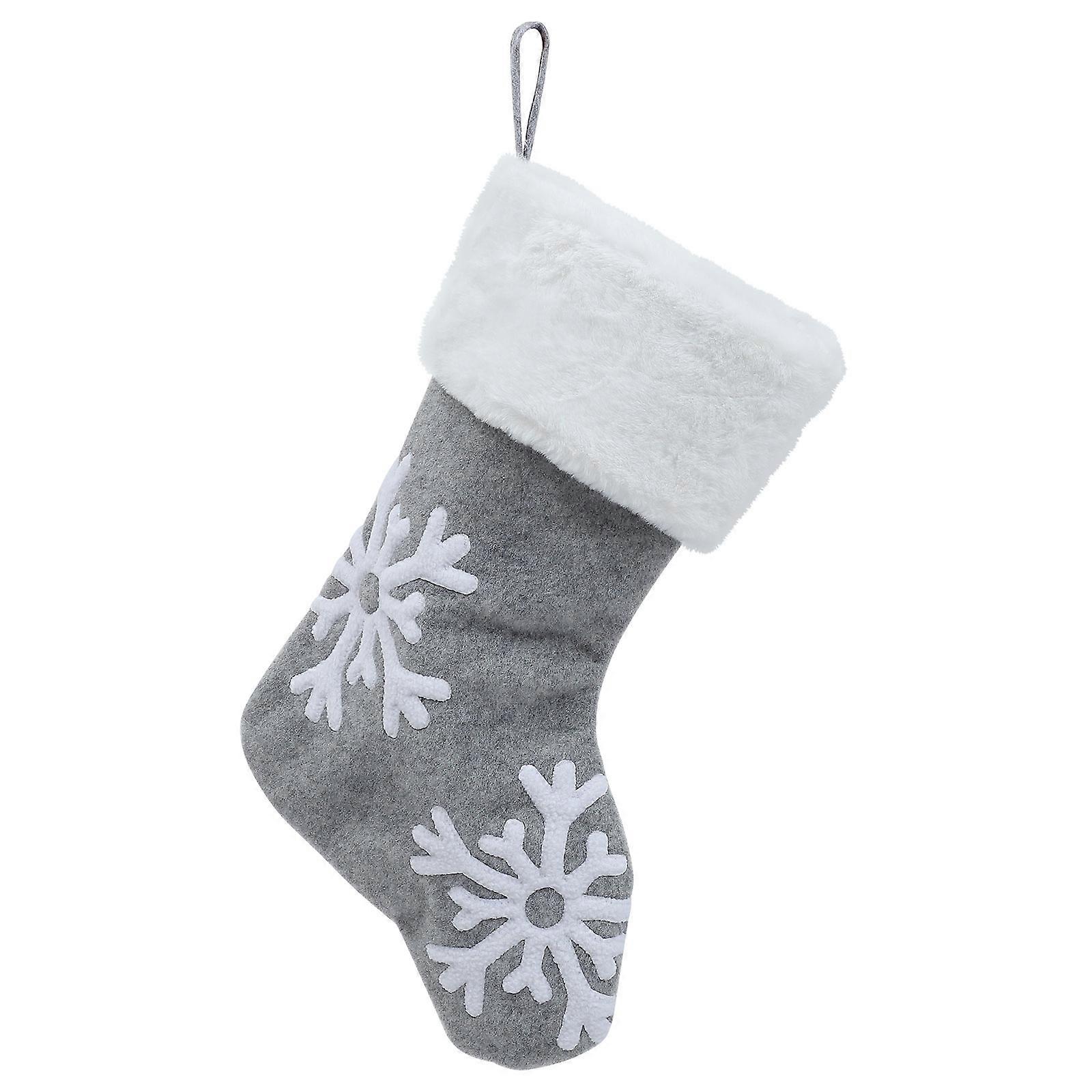 1Pc Christmas Embroidery Christmas Stocking Decoration Pendant Gift Bag (Grey)