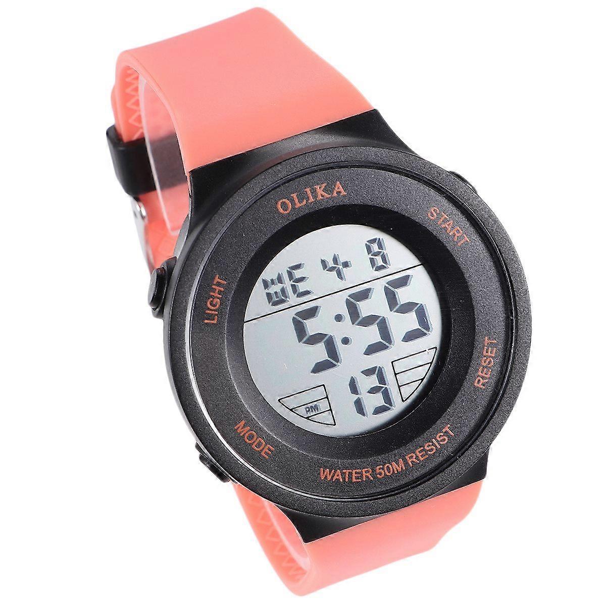 1pc Luminous Waterproof Student Watch Multifunction Electronic Watch Time Keeping Wristwatch for Swimming Running Sports (Orange)