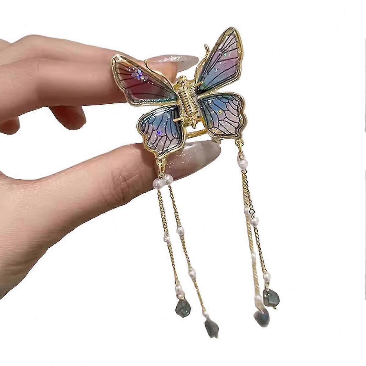 Features:<br> Charming Butterfly Design: Our butterfly design hair clips feature vibrant and colorful butterfly motifs that add a playful touch to any hairstyle, making them perfect for women and girls alike.<br> Strong Hold & Nonslip: These women's butterfly hair claw clips are designed with a strong grip to securely hold thick hair in place, ensuring your hairstyle stays intact all day long, even during active moments.<br> Versatile Styling Decor: Perfect for any occasion, these colorful butterfly hair clips serve as stylish hair ornaments, enhancing your look for holidays, parties, or everyday wear, adding a touch of whimsy to your outfit.<br> Ideal For Daily Use: Designed for women and girls, these large claw clips are not only functional but also fashionable, making them a go-to accessory for quick hair styling or diy hairstyles at home.<br> Durable & Premium-Quality Material: Crafted from premium materials, our hair styling decor hair clips are built to last, providing both style and durability, so you can enjoy beautiful hair accessories for years to come.<br> Specification:<br> Material: Alloy<br> Size: 4.2*3.9cm<br> Tassel Length: 9.5cm<br> Notes: Please allow slight tolerances in size due to manual measurement, and lighting in photography may result in a difference in color than in real.<br> Include: 1*Butterfly Hair Clip