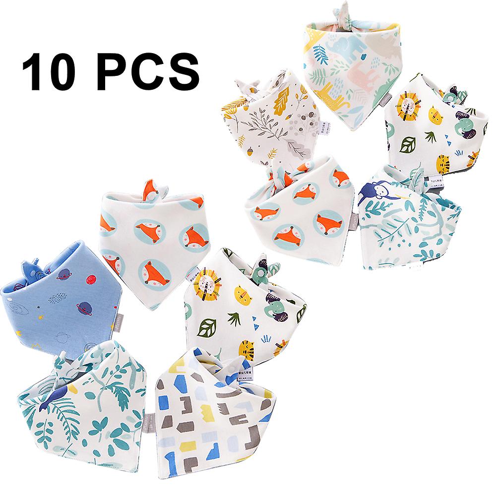 Product Description Material: Cotton Size: 45*34*34cm Style: Style 1, Style 2, Style 3 Quantity: 10 piece set Package content: 10*baby triangle scarf 1.10 piece set Stylish Cute Bandana BibsSpecially handpicked versatile and unisex designs ensure that your baby never runs out of styling options. Neutral colors make clothing coordination easier and fuss-free for parents! Adding more fun to your babys OOTD, allows him or her to drool in style! 2.Super AbsorbentOur stylish Baby Bandana Bibs feature a dual-layered design with soft organic cotton for maximum absorption capacity. Keep your drooling and teething baby dry and fresh all day long. No more wet clothes! Simply machine wash and tumble dry low for daily use, making the bibs a practical solution for busy mommies and daddies! 3.Soft Fabric For ComfortOur Bandana Bibs are made with high-quality stitching and ultra-soft premium fabric to ensure that your baby stays comfortable in their baby bibs all day long without fussing and crying. There is no scratchy material to cause skin rashes. 4. Sizes Adjustable SnapsWith 2 sets of easily fastened nickel free snaps, you can adjust the Bandana Bibs to fit your babys neck for added comfort. The secure snaps stand up to the babys tugging and pulling. 5.Perfect Baby Shower GiftAll parents love cute and useful gifts. Our bib set comes with a cute printed gift box, making it the perfect baby gift for all new parents.