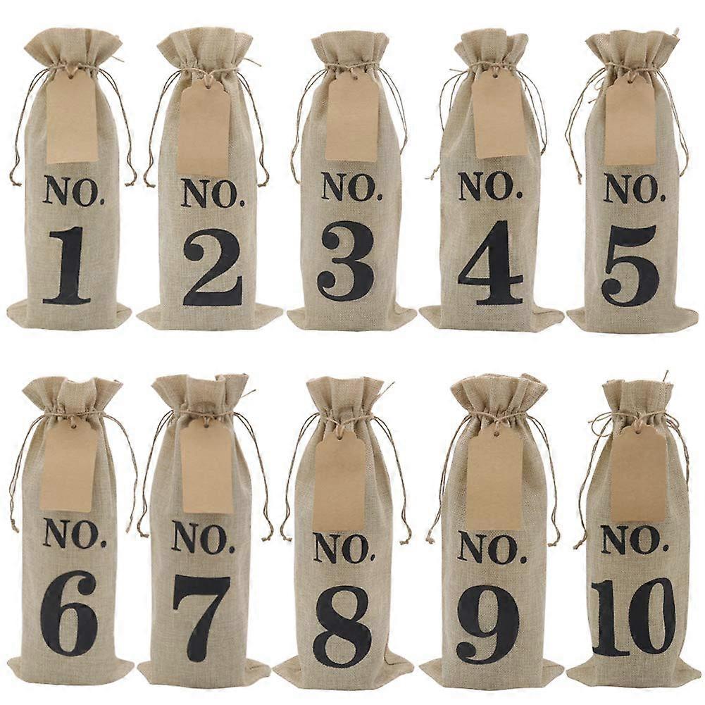 10Pcs Burlap Wine Bags with Tags for Christmas Wedding Decoration