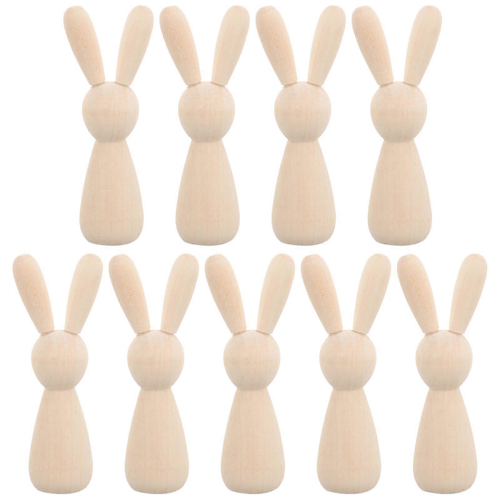 10pcs Unfinished Wooden Peg Dolls Peg Rabbit Wooden Figures Blank Peg Doll Rabbit For Diy