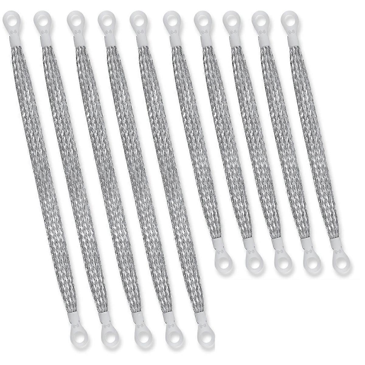 Convenient Size Assortment: This pack includes 5 universal automotive ground straps measuring 10 inches (250mm) and 5 measuring 12 inches (300mm). This versatile assortment can accommodate installation needs, providing you with a well-rounded grounding solution for a of vehicles and appliances. Exceptional Durability: Crafted from robust copper, these ground straps are resilient against wear and tear. They are capable of withstanding rigorous usage, assuring you of a firm connection and an impressively long lifespan. Invest in a grounding solution that epitomizes and reliability. Superior Electrical Conductivity: Boasting an unparalleled copper construction, these straps deliver maximum conductivity. The grounded strap provides stable, reliable performance, making it a reliable choice for applications. With these straps, you can expect consistently excellent performance. Designed: Featuring a braided design, these automobile grounding straps are engineered with durability and flexibility in mind. They a firm yet flexible connection, making them incredibly easy to use. Get your vehicle grounded conveniently and efficiently with our smartly-designed ground straps. Versatile Utility: Our copper ground straps come in handy for a wide range of applications, allowing you to ground an assortment of vehicles effortlessly. Besides, they are suitable for use with appliances, , junction boxes, etc., making them a must-have addition to your tool kit. The actual product may have slight color differences or differences, which does not affect use. Colour:Silver Material:copper Package Contents: 5 x automotive ground straps 250mm 5 x automotive ground straps 300mm Only the above package content, other products are not included. Note: Light reflection and different displays may cause the color of the item in the picture a little different from the real thing. The measurement allowed error is +/- 1-3cm.