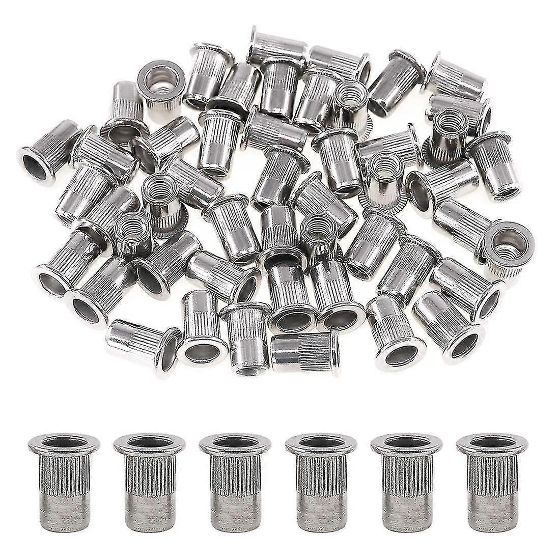 100pcs 304 Stainless Steel Flat Head Threaded Rivetnut Insert Nutsert Rivet Nut Assortment Kit - M3 M4 M5 M6 M8 M10 M12