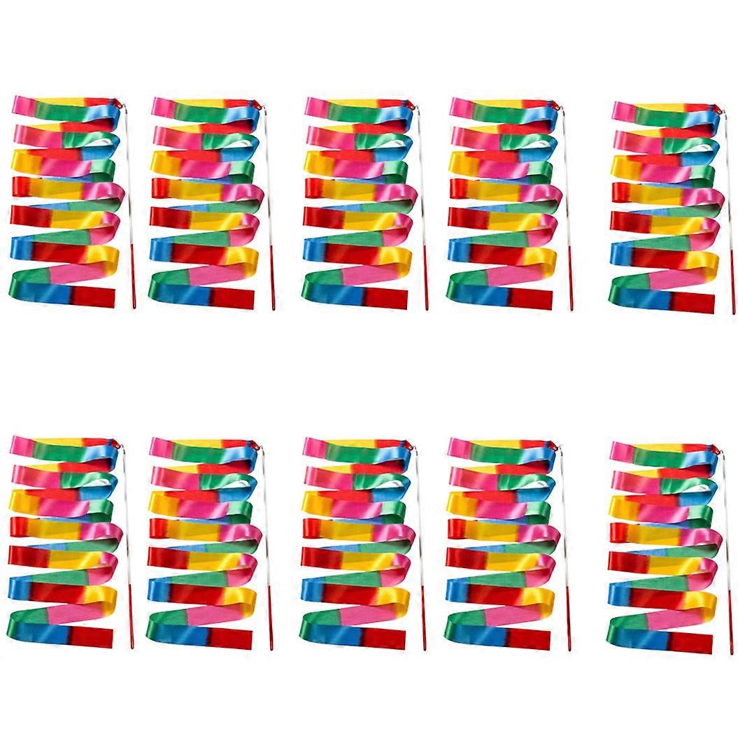 10Pcs Professional Gymnastics Ribbon With Fade Resistant Silk Fabric And Ergonomic Handle For Precise Movements Multicolor