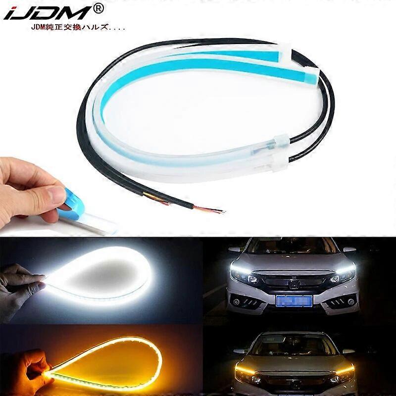 12-24 Inch Xenon White LED DRL & Amber yellow LED Sequential Flash Strip Lights For Car Headlight Retrofit Docoration 12V