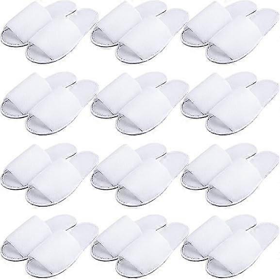12 Pairs Spa Slippers Disposable Open Toe White Slippers Fluffy S