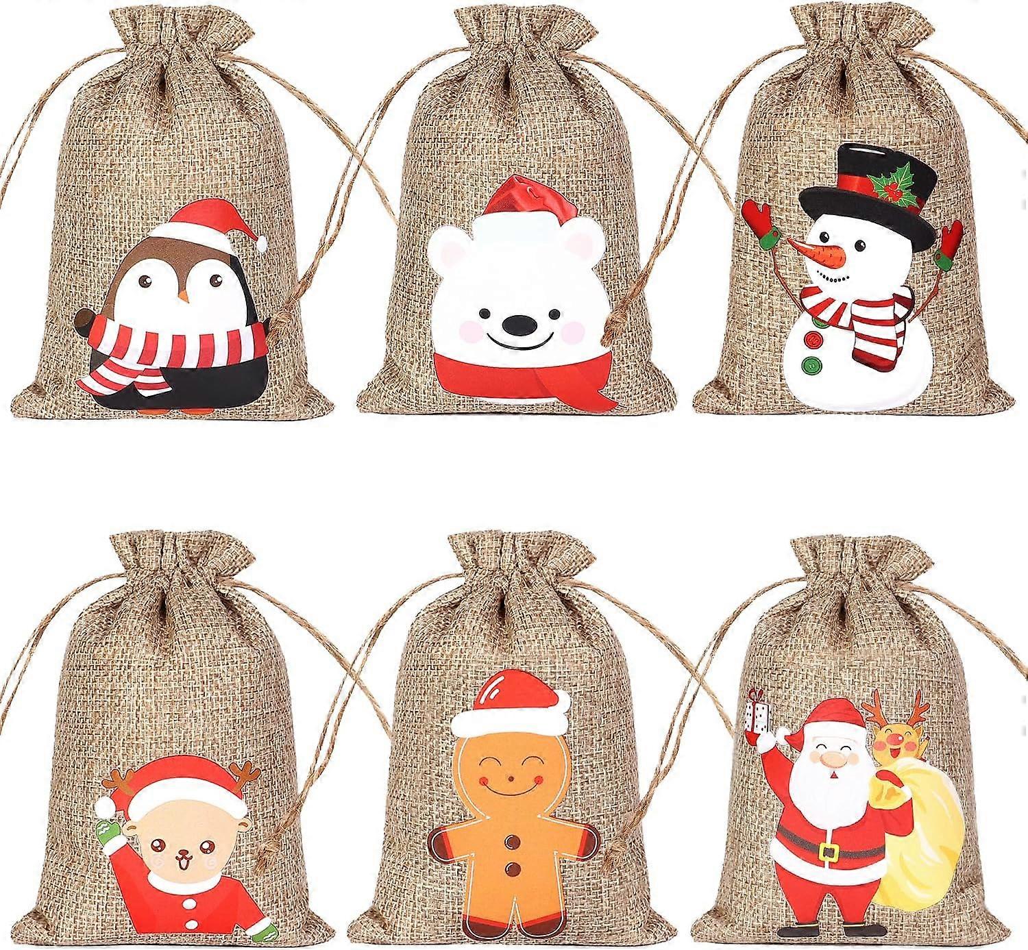 12PCS Christmas Linen Bags with Drawstrings Jute Burlap Gift Bags Candy Bags for Christmas Favors Wedding Gift Bags