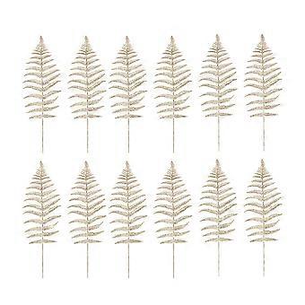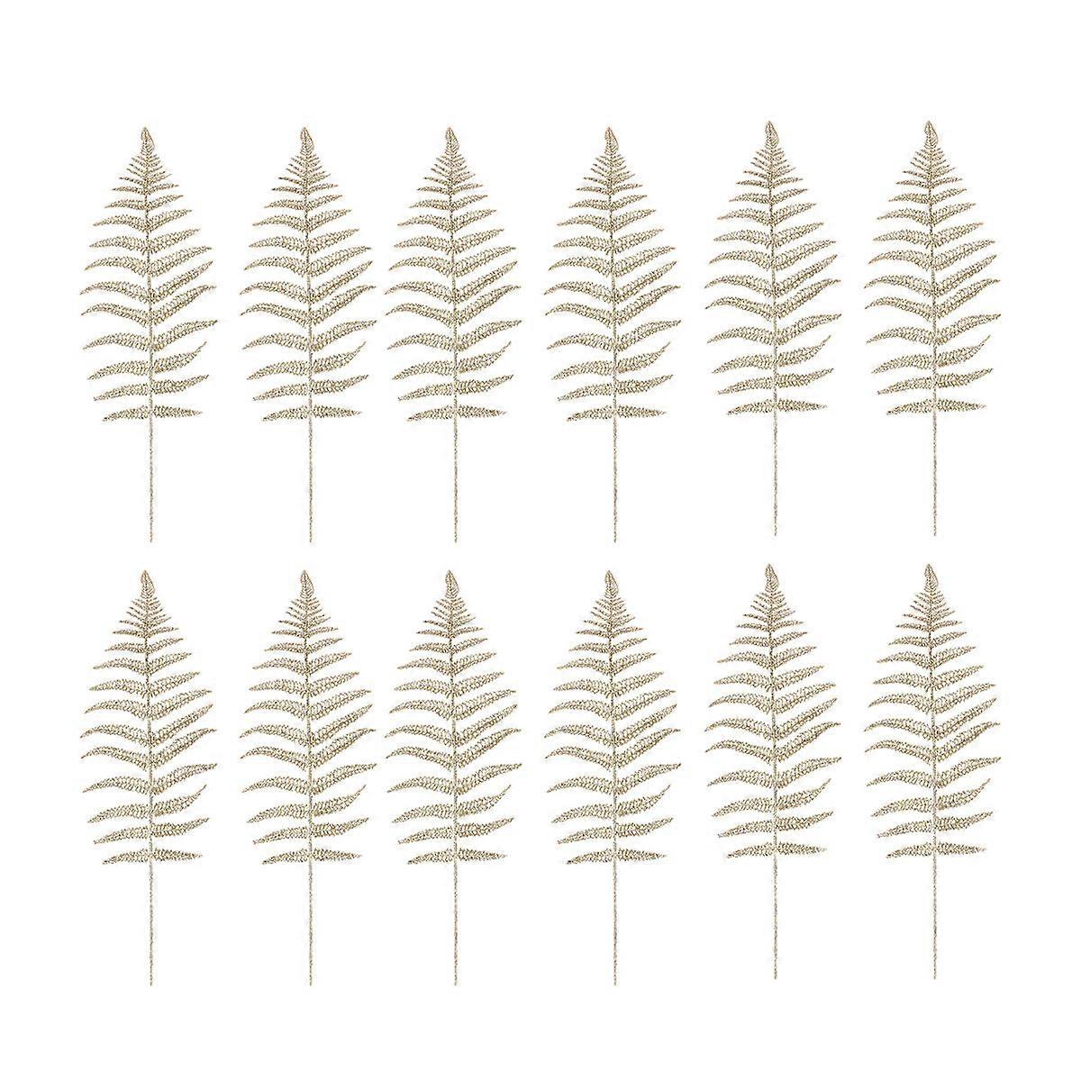 12pcs Simulation Persian Leaves Christmas Decorative Supplies Festive Plastic Plants for Home Shop Silver