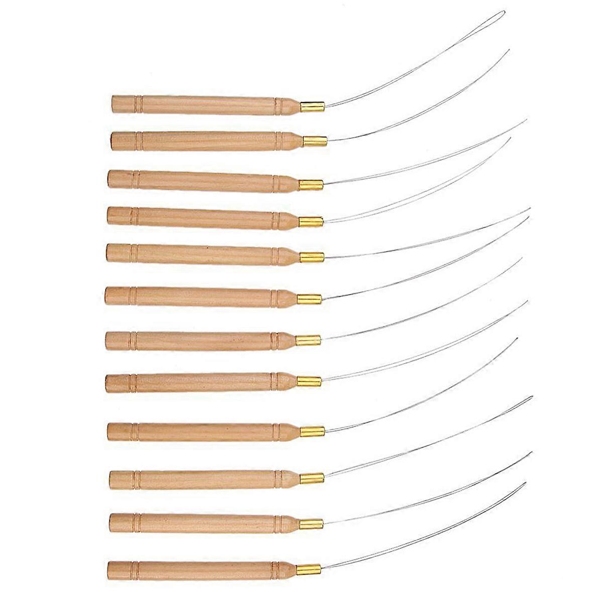 12pcs Hair Extension Loop Needle DIY Tool with Wooden Handle Comfortable AntiSlip Multi Color