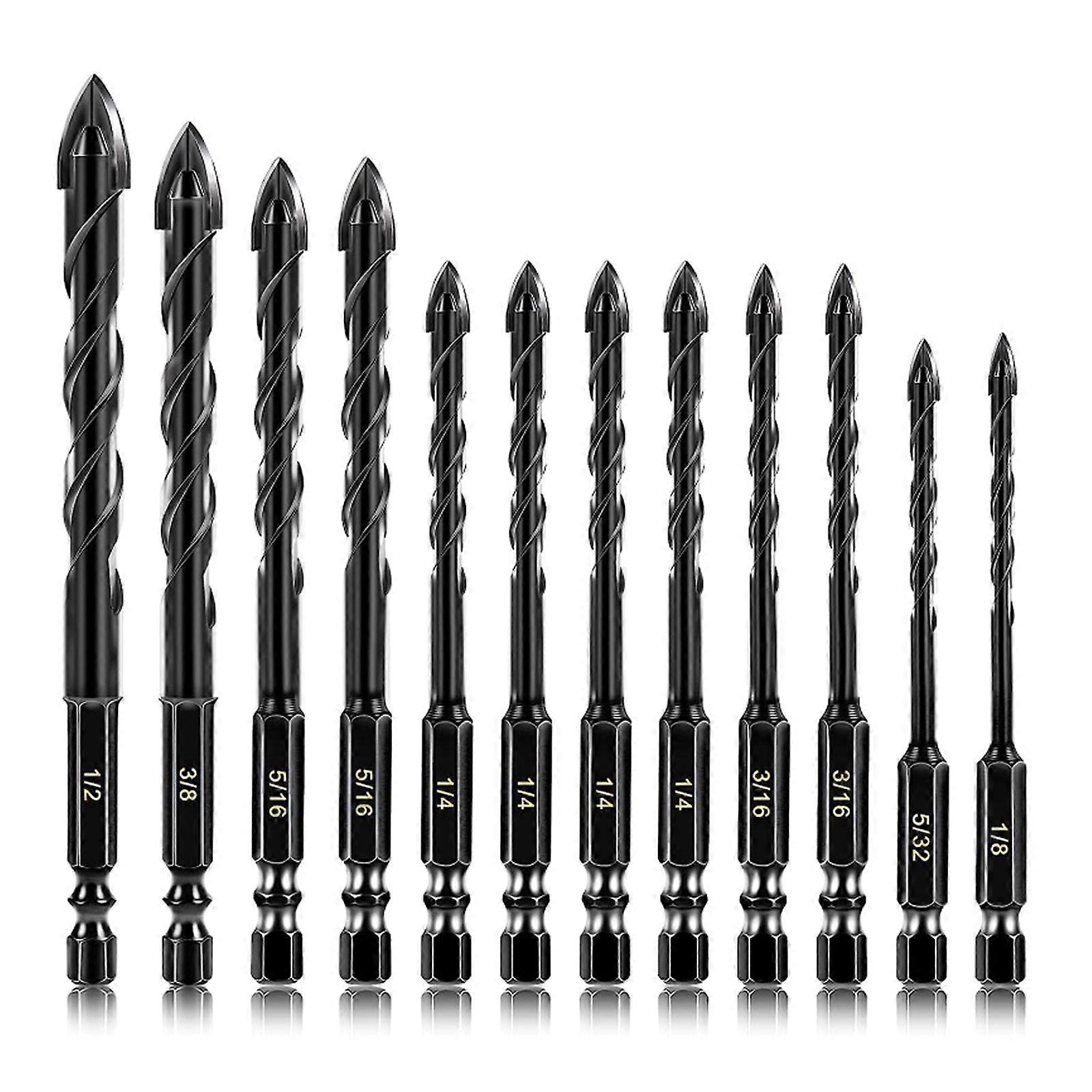 12Piece/set Concrete Drill Bit Kit Suitable for Glass Plastic Wood Brick Multiple Material Applications Various Surfaces Multicolor