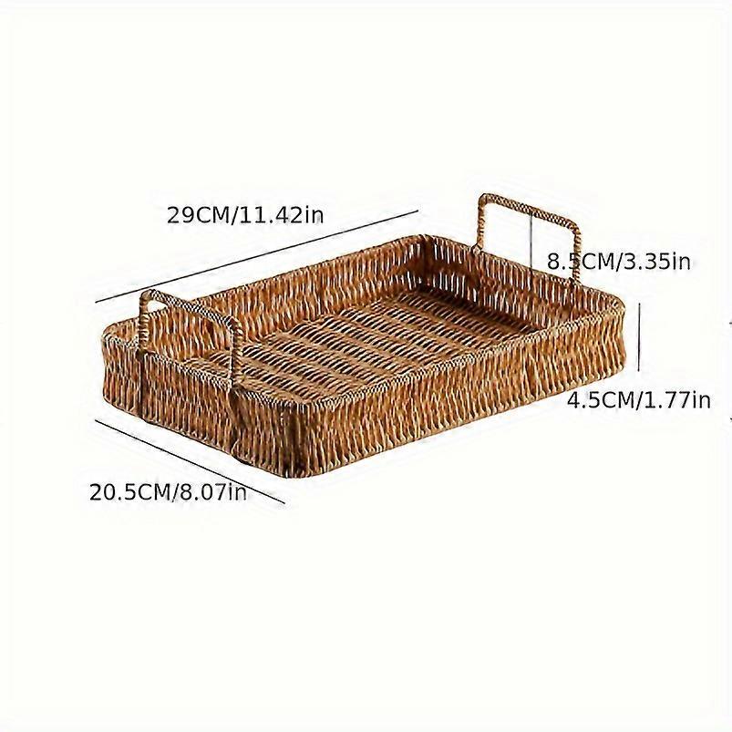 1/3pcs Hand-Woven Imitation Rattan Rectangular Serving Tray, Imitation Rattan Fruit Baskets Snacks Food Plate Storage Tray Food Serving Holders Fruit