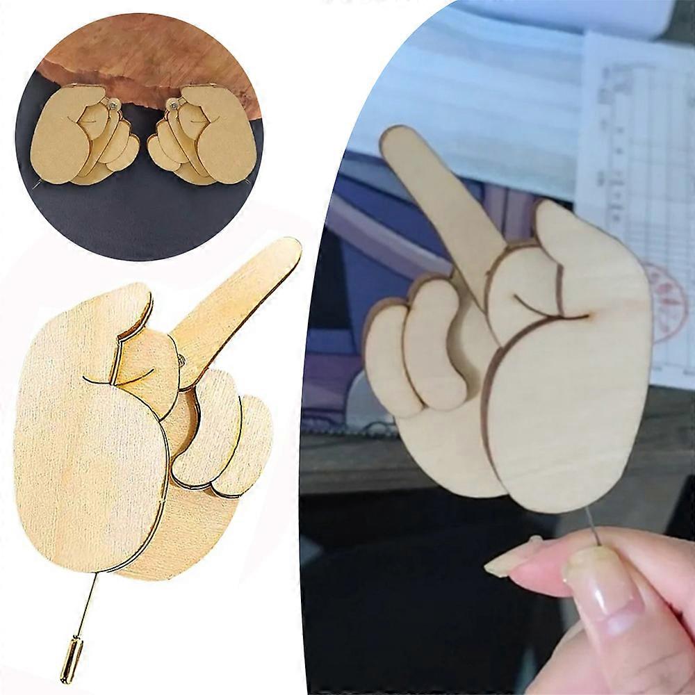 1/3/5 PCS Funny Wooden Finger Brooch, Handmade Flippable Middle Finger Pin, Interactive Mood Expressing Pins Emotional Pin, Middle Finger Gifts