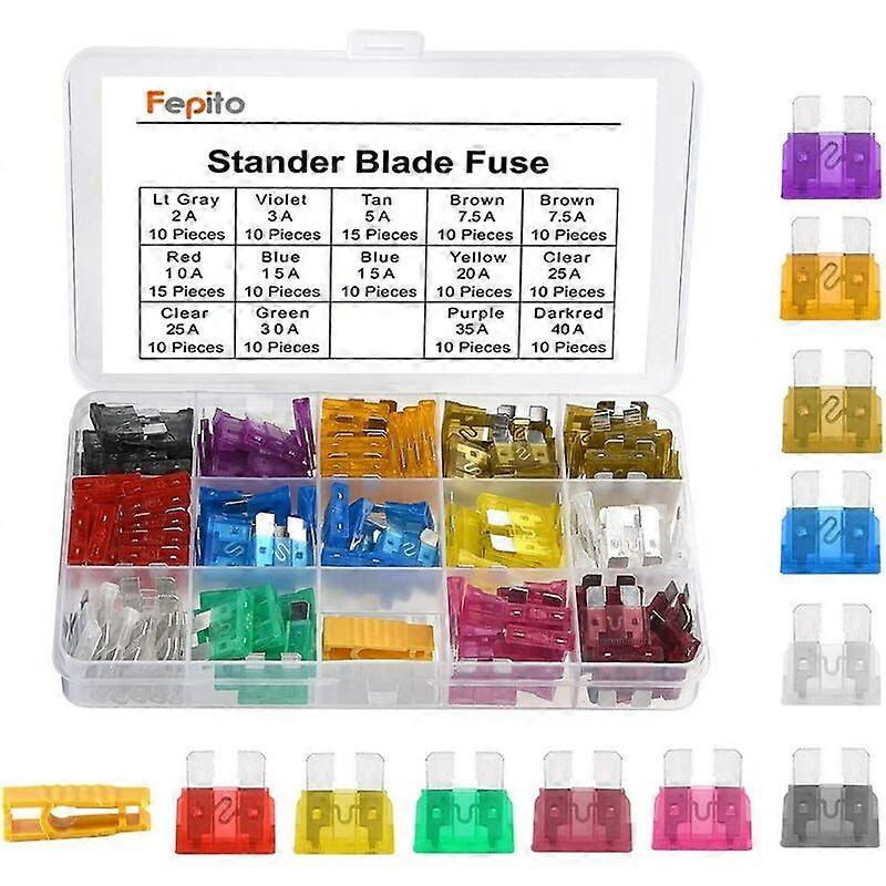 150pcs Car Standard Fuses Assortment Blade Fuse 2A 3A 5A 7.5A 10A 15A 20A 25A 30A 35A 40A for Auto Car Truck with 1 Blade Fuse Puller and 1 Storage Bo