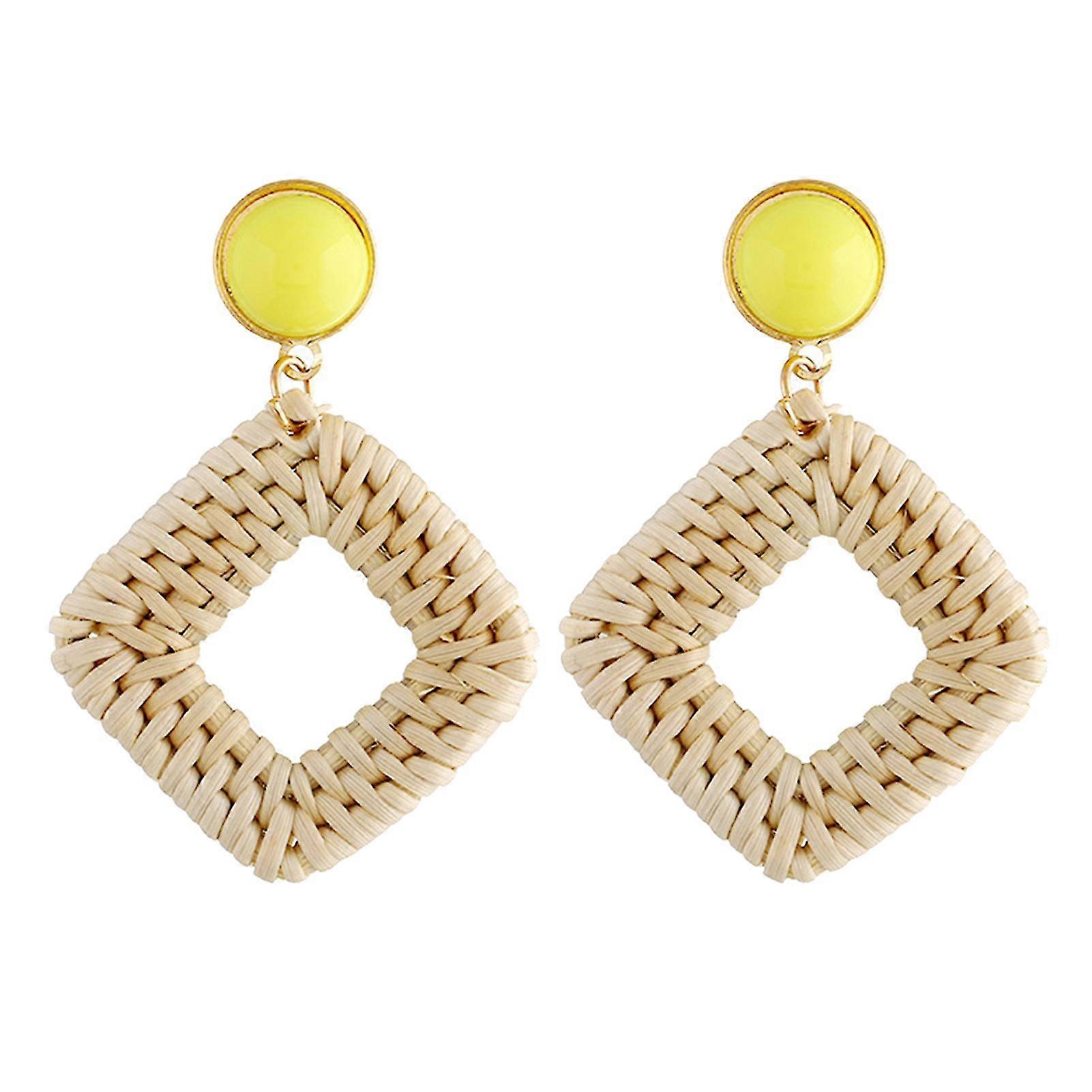 1pair Dangle Earrings Girls For Women Rattan Woven Gift Retro Ethnic Beach Daily