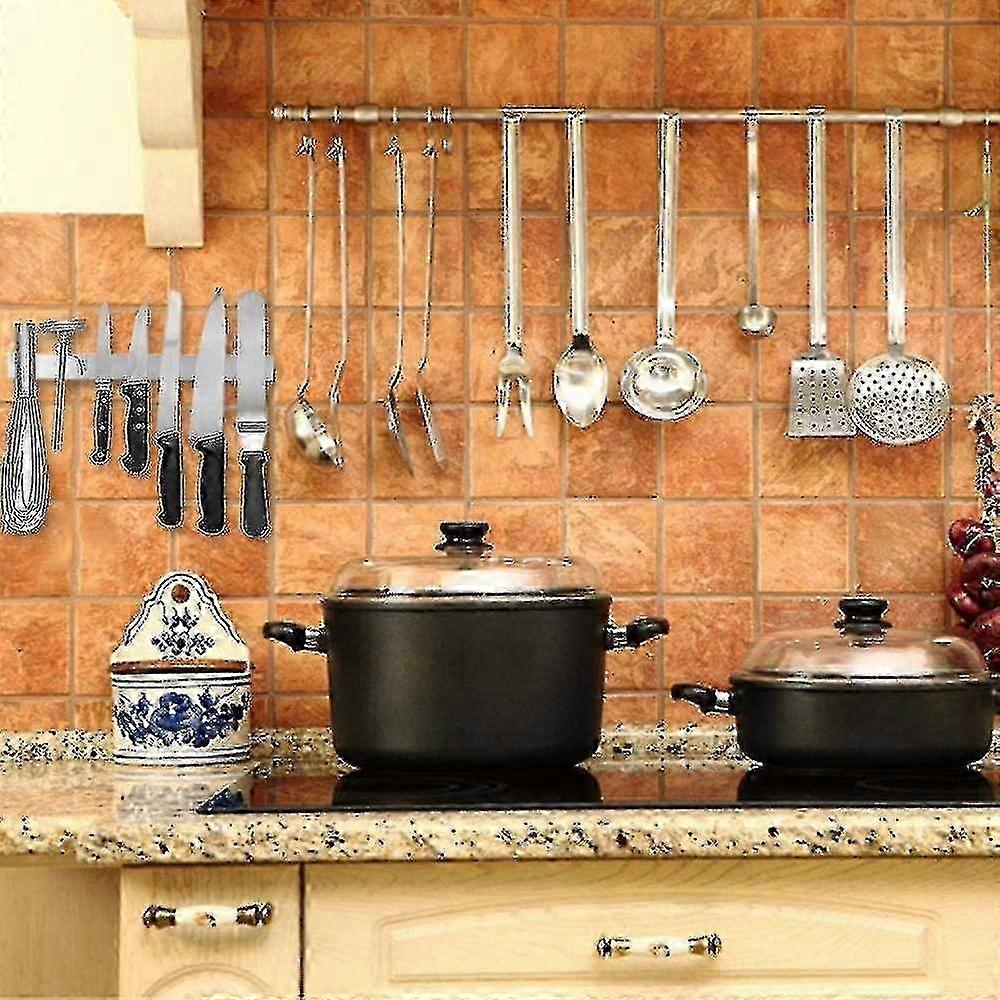 Premium magnetic knife: This stylish magnetic knife holder is made of high-quality 304 stainless steel and coated with an elegant SatinFinish, so that even your largest knives can hang safely and securely. Space-saving: The slim, modern, space-saving design of our tool organizer saves valuable space on the worktop and workbench and at the same time ensures easy work and joy in preparing food for your family. Organize It All: Use the magnetic knife storage bar for knives, scissors, tools, kids' toys, keys, and anything else you can think of as the ultimate organizer. Quick Installation: Die-less design, there is a long strip of 3M adhesive on the back of the magnetic knife. Cover the cover film and press it against the wall for more than 10 seconds. It can be used after 48 hours. Knife blocks take up valuable space on the worktop, this self-adhesive magnetic knife holder can safely free your workplace High-quality magnets so that even your largest knives can hang up safely and securely. Easy installation, remove the 3M adhesive film of the magnetic knife and press it on the wall for more than 10 seconds. Versatile, can hold tools, scissors, tools, children's toys, keys, and anything else metal. Application steps: 1. First wipe the wall surface with a towel or paper towel to clean the oil so that the wall surface is free of water and dust. 2. There is a whole 3M adhesive on the back of the product, remove the protective sticker and press it on the wall for more than 10 seconds. 3. Can be used after 48 hours Note: The product can be applied to smooth tiles, lacquered panels, smooth marble, mosaic, smooth glass, matte glass, smooth metal, acrylic sheet, solid wood wall. It is forbidden to use on plaster wall, wallpaper, plaster wall. Specification: Color: Silver. Material: 304 stainless steel Size: Length 30cm Scope of delivery:1 x magnetic knife holder