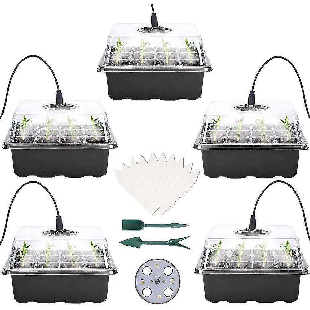 2-5 Pack Seedling Tray Starter with Grow Light Seed Starter Trays with LED Light Gardening Plants Germination Tray with Holes