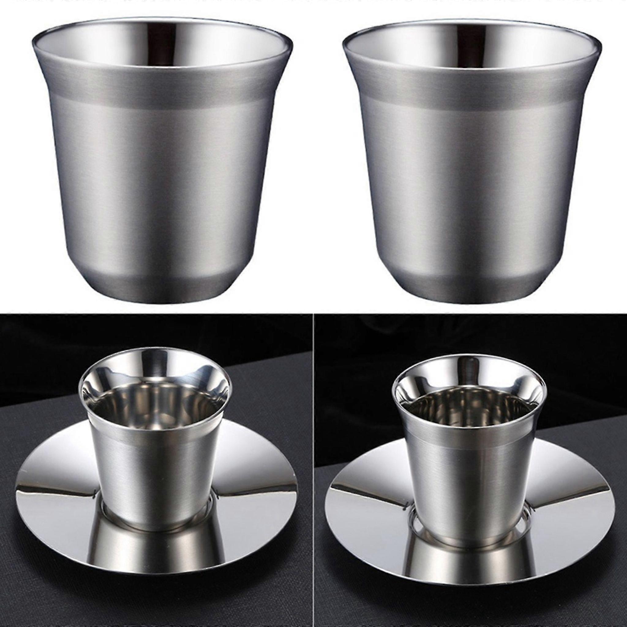 2-piece Set 80ml Espresso Cup Stainless Steel Insulation Tea Coffee Cup Mocha Cup Double Layer With Stainless Steel Coaster