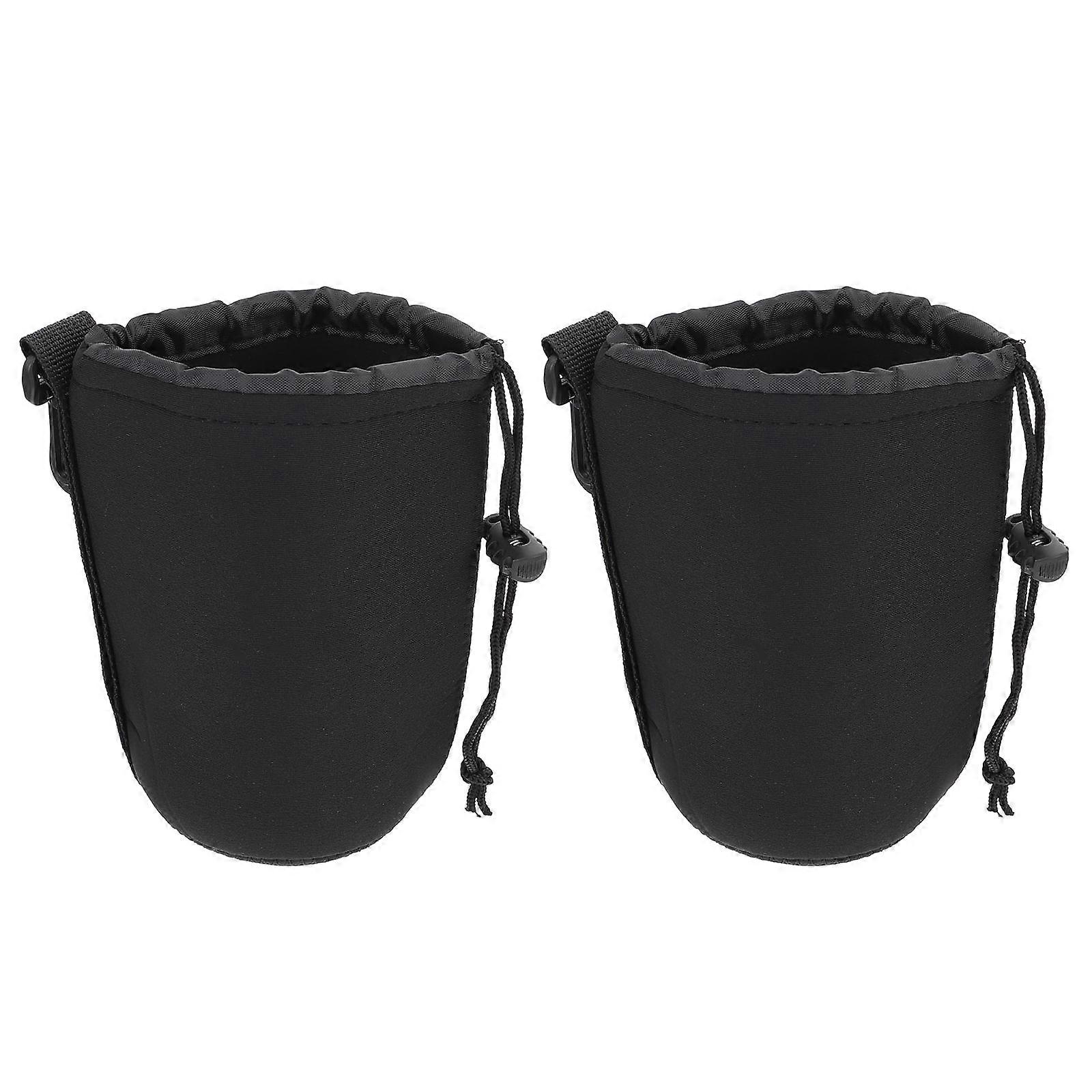 2 PCS Camera Lens Bag Pouch Neoprene for Shots Drawstring DSLR Plug-in Travel