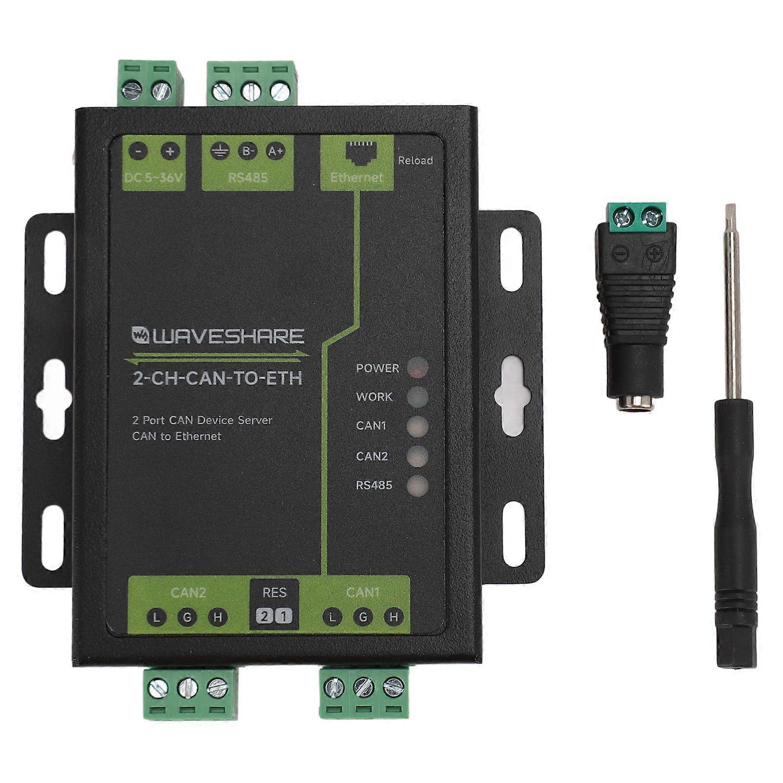 Feature:1. Hardware Guard: New hardware guard, CAN, serial port, network port, power supply have high level guard, suitable for more demanding industrial environments; new ARM kernel, industrial grade operating temperature range, carefully optimized TCP IP protocol, stable and reliable.2. Easy to Use: 10 100Mbps network port, support for Auto MDI MDIX, cross direct line can be used; support CAN ID filtering function, a variety of filtering methods to use more secure and convenient; a port can support two SOCKET connections.3. Simple Setup: CAN baud rate support 10K~1Mbps; support BASIC and LOOPBACK working mode; support static IP address or DHCP to get IP address automatically, and can query devices in the network through UDP broadcast protocol; Reload button, one key to restore the default settings, not afraid of wrong settings; RJ45 with Link Data indicator. RJ45 with Link Data indicator, external isolation transformer on the network port, 1.5KV electromagnetic isolation.4. Upgrade Firmware: The world's only Media Access Control Address (starting with D8 B0 4C); support firmware upgrade through the network, firmware update is more convenient; support for web port (default 80) change; support for keepalive mechanism, you can quickly detect the dead connection and other anomalies and quickly reconnect.5. Account Security: Support account and password, which can be used for web login and network settings, more secure; power supply interface supports 5.082 terminal block and wide voltage supply (5~36V); CAN relay function; CAN to 485 function.Specification:Item Type: 2 Port CAN to Ethernet ServerMaterial: Aluminium AlloyDevice Interface: CAN RS485 ETHHardware:Operating Voltage: DC 5~36VWorking Current:26mA (avg) 36V56mA (avg) 12V124mA (avg) 5VPower Guard: Power Surge Level 3, Group Pulse Level 3Network Port Specification: RJ45, 10/100Mbps, Cross Direct Connection AdaptiveNetwork Port Guard: 1.5KV Electromagnetic IsolationSerial Port Support: RS485Serial Baud Rate: 600bps~115.2KbpsCAN Baud Rate: 10Kbps~1MbpsCAN Operation Mode: Basic, LoopbackCAN Guard: Power Isolation, Signal IsolationSoftware:Network Protocol: IPV4, TCP UDPIP Acquisition: Atatic IP, DHCPUser Configuration: Web Configuration, Serial, Network AT CommandsTCP Server Connection: Supports up to 4 Channel TCP CconnectionsCAN Receive Capability: 8000 frames/sec (Per Channel)CAN Transmit Capability: 8000 frames/sec (Per Channel)120 Resistor: Built in and ConfigurableNetwork Buffer:Transmit: 16Kbyte (Total)Receive: 16Kbyte (Total)CAN Cache:Transmit: 200 Full Packets (Per Channel)Receive: 200 Full Packets (Each Way)Serial Cache:Transmit: 2Kbyte; Receive: 2Kbyte;Flow Control: NoneHeartbeat Packets, Registration Packets: Supports Customized Heartbeat Packets (CAN Packets Compliant with Pass Through Protocol) for the Network InterfaceSupport Customized, Media Access Control Address, Pass Through Cloud Registration PackageAverage Transmission Delay: <20msSupporting Software: Setup Software, VCOM (Does Not Support Auto Search)Others:Operating Temperature: -40~85 (Industrial Grade)Storage Temperature: -40~105COperating Humidity: 5~95%RH (No Condensation)Storage Humidity: 5~95%RH (No Condensation).Package List:1 x Module1 x Power Adapter1 x Screwdriver