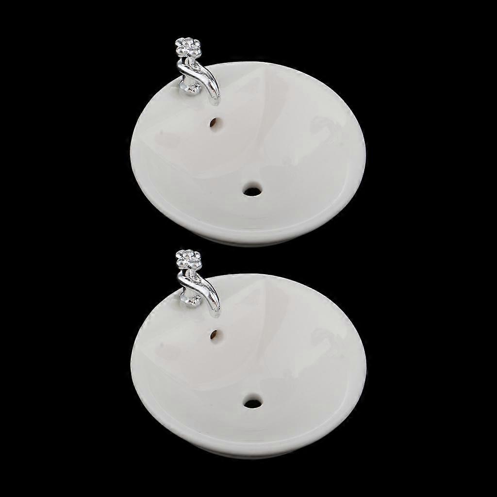 2pcs 1:12 Dollhouse Miniature Ceramic Round Wash Basin Bathroom Sink Model