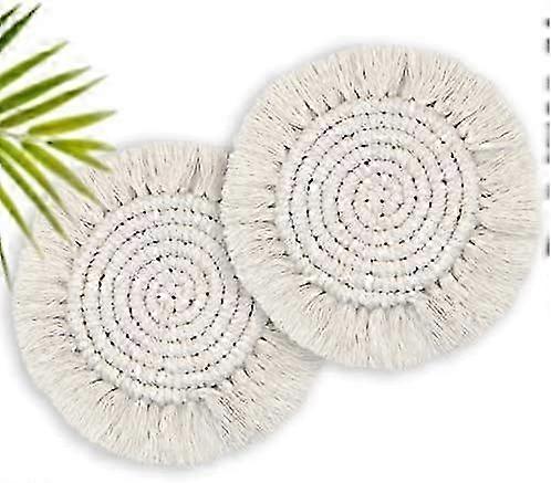 2 Pcs Boho Macrame Drink Coasters, Handmade Absorbent Desk Coaster for Mugs, Cups, Cute Rustic Farmhouse Decor