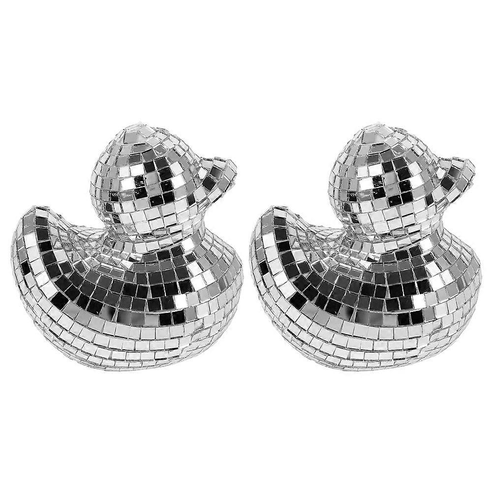 2Pcs Disco Animal Figurines Mirror Duck Decoration for Desktop Silver Color
