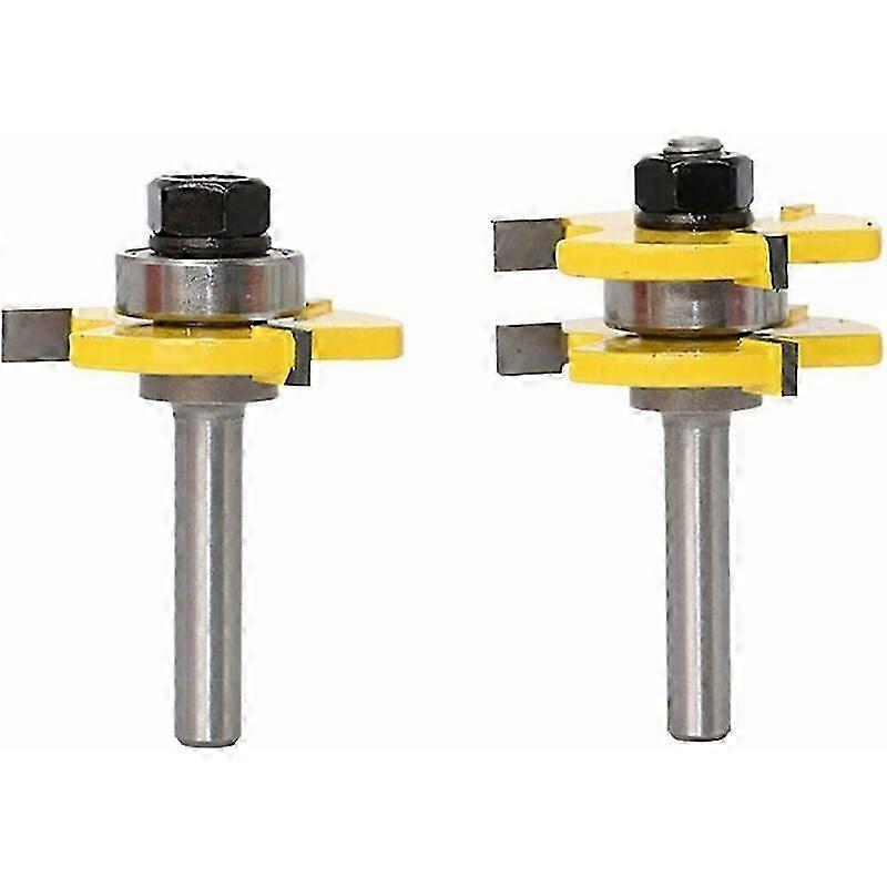 2pcs Tongue and Groove Cutter, 3 Teeth Woodworking Cutter (Shank 1/4")