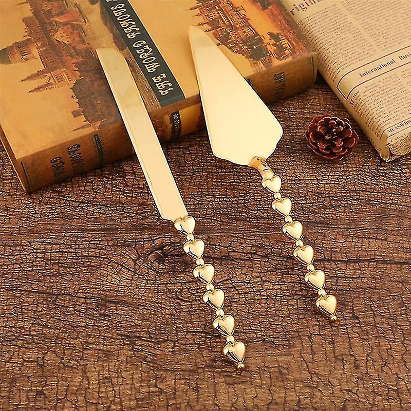 2pcs Heart Shape Handle Cake Cutter Golden Cake Shovel Knife Wedding Cake Knife Server Set Party Ba