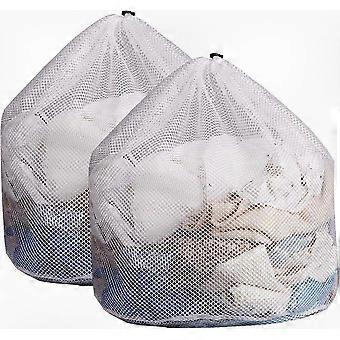 2pcs White Mesh Laundry Bags, Large Drawstring Washing Bags, Extra Big Storage Bags (Clothes Not Included)