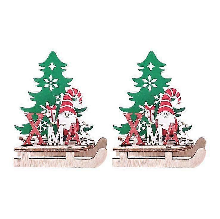 2pcs Christmas Decorations Christmas Wooden Jigsaw Puzzles Sleigh Ornament