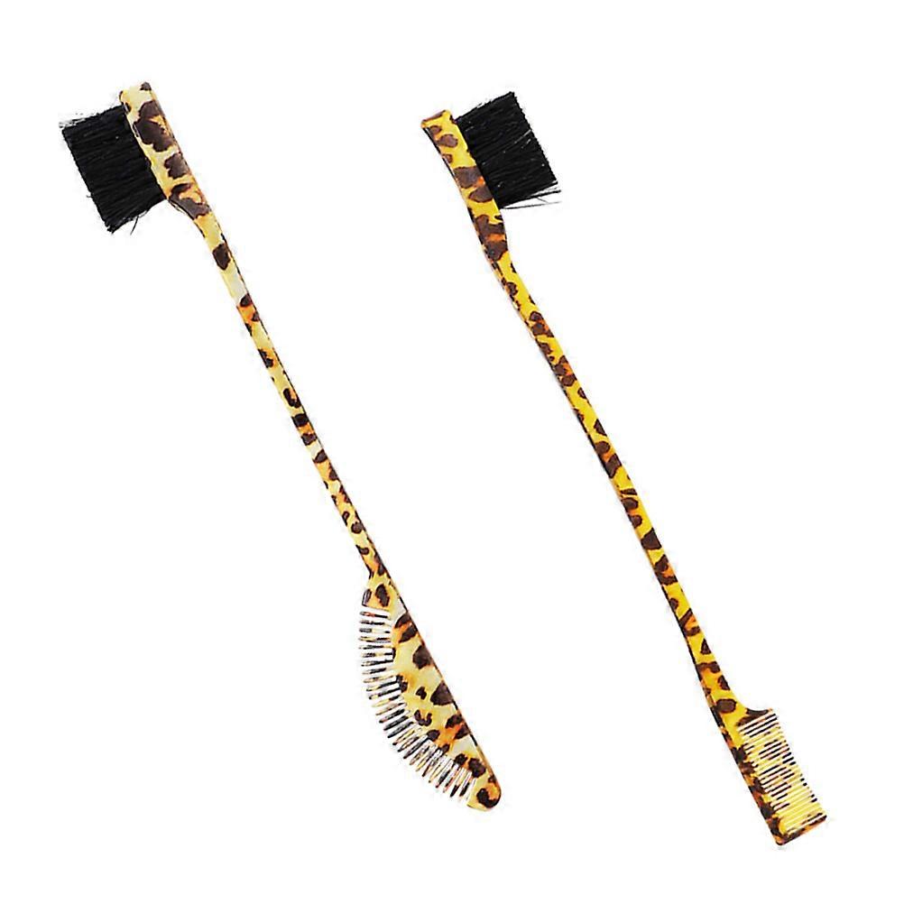2Pcs Leopard Print Double-ended Eyebrow Brushes and Combs for Home Use Durable PP Material