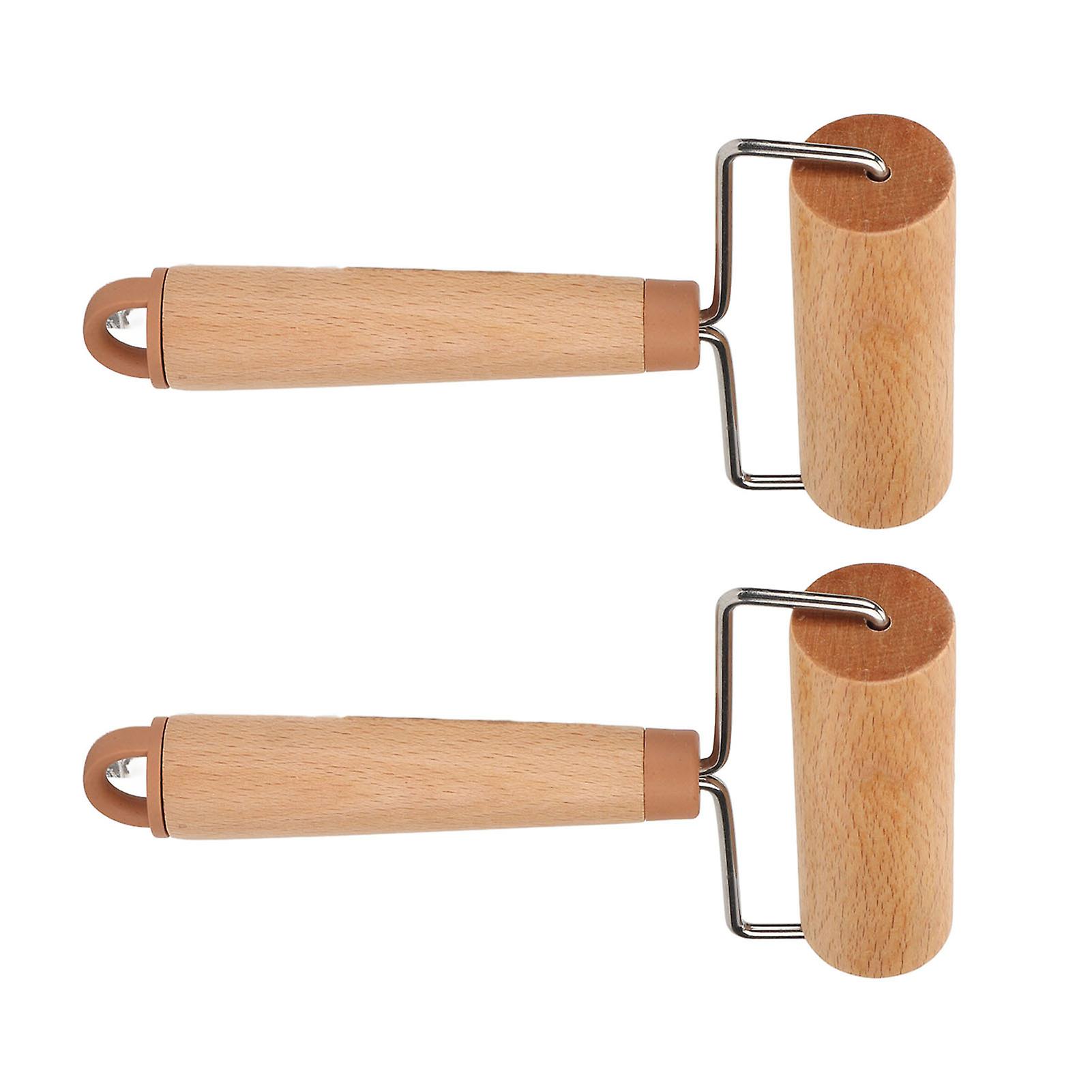 2Pcs Small Rolling Pin 360 Degrees Rotation Ergonomic Handle Easy to Clean Wooden Dough Roller for Pizza Cake Bread