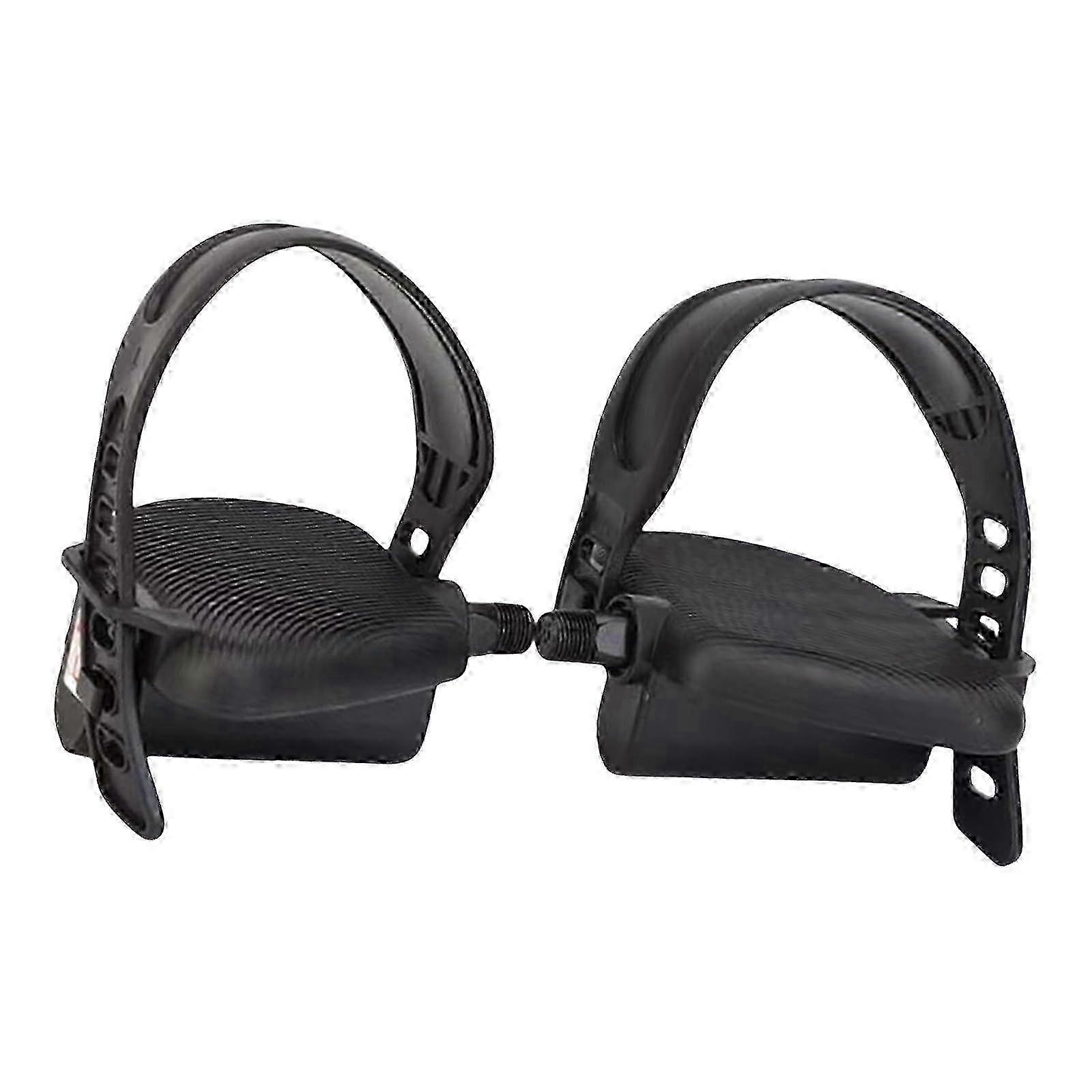 2Pcs Exercise Bike Pedals and Fixed Strap Set Exercise Bike Pedals Replacements with Adjustable Pedal Strap for Bikes