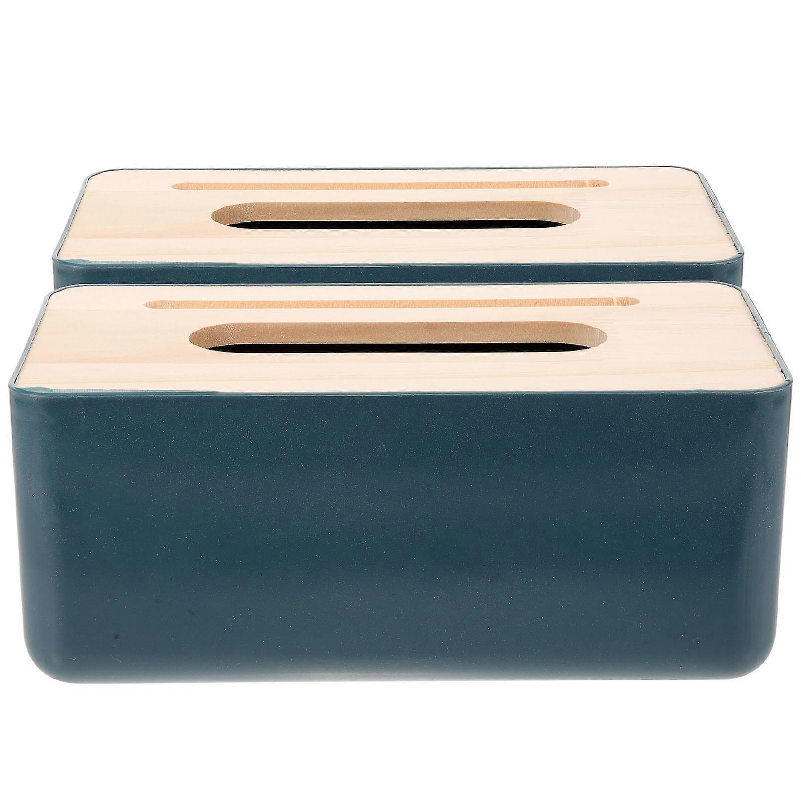 2pcs Tissue Storage Box in Dark Blue Plastic for Home Use Simple and 7x4.5x3.5 inches