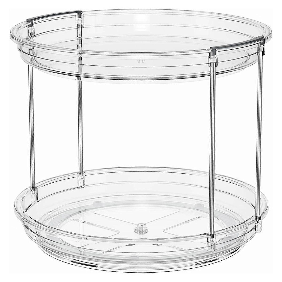 Customize your space by stacking these units into a 3-tier clear Lazy organizer when you buy 2 Sets - well-suited for kitchen cabinet organizer spices or seasoning, cans, beverages, medicine, bathroom counter organizer makeup, perfume, and more Unlike other flimsy plastic seasoning organizers, our lazy turntable for cabinet uses metal rods to connect the two tiers for a sturdy construction that ensures stability even when loaded with heavy jars Measuring 9.25'' diameter, 7.9'' height, 2 tier lazy organizer is greatly for organizers and storage needs and it's a spice organization for cabinet, kitchen, pantry, fridge, countertop, makeup or perfume organizer for bathroom, vanity, a medicine cabinet organizer and more lazy organizer for cabinet with ball bearings rotates smoothly 360°, allowing you to easily view and access items from all angles without moving anything. The raised 1-inch edge prevents items from tipping over No tools are required for assembly and removal. Our rotating spice rack organizer is Made of plastic, and easy to clean-clean it with water 2 Tier Lazy Turntable Spice Rack Organizer 9.25'' Rotating Organizer Container for Kitchen, Cabinet, Pantry, Bathroom, Vanity, Fridge, Countertop, Makeup Organizer, Clear 1Pack Color: As Shown Material: plastic Package Contents: 1*pcs 2 Tier Lazy Turntable Spice Rack Only the above package content, other products are not included. Note: Light reflection and different displays may cause the color of the item in the picture a little different from the real thing. The measurement allowed error is +/- 1-3cm.