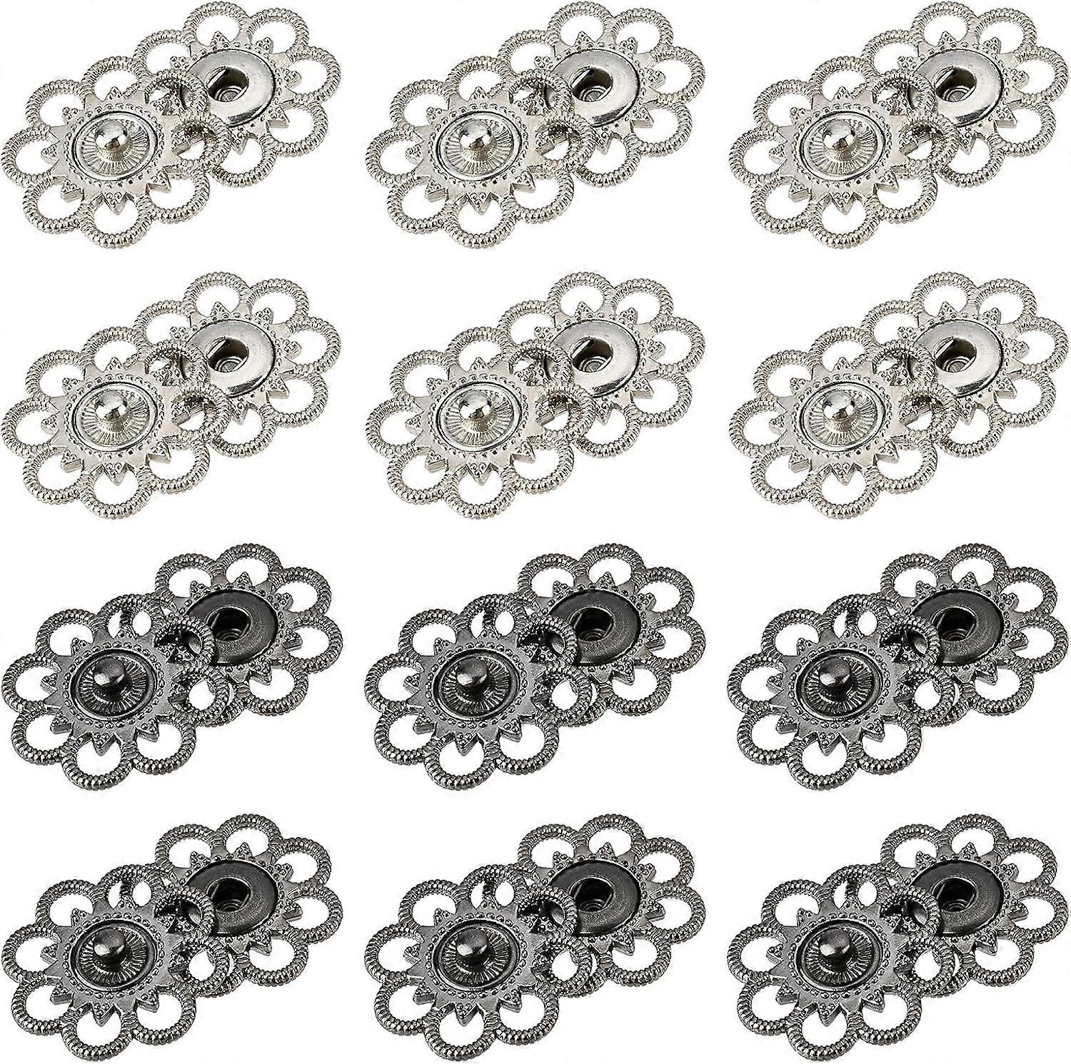 20 Sets Alloy Flower Snap Buttons 2 Assorted Colors Vintage Metal Sew On Press Snap Button Fasteners for Costume Design 1" in Diameter